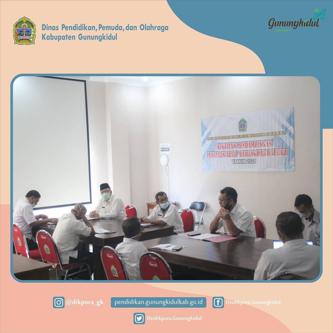 WONOSARI- Dinas Pendidikan, Pemuda, dan Oalhraga (Disdikpora) Kabupaten Gunungkidul menerima kunjungan dari Dinas Perpustakaan dan Kearsipan Kabupaten Gunungkidul. Kunjungan tersebut